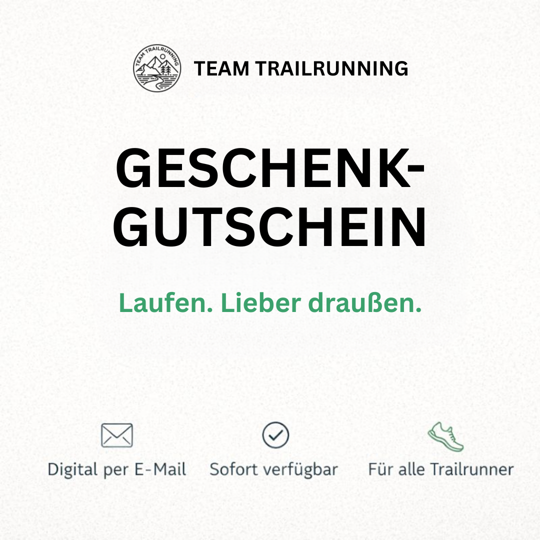 Mit dem Team-Trailrunning-Geschenkgutschein liegst du immer richtig – ganz ohne Risiko bei Größe, Farbe oder Design. Der Gutschein wird digital versendet und ist sofort nach dem Kauf per E-Mail verfügbar.